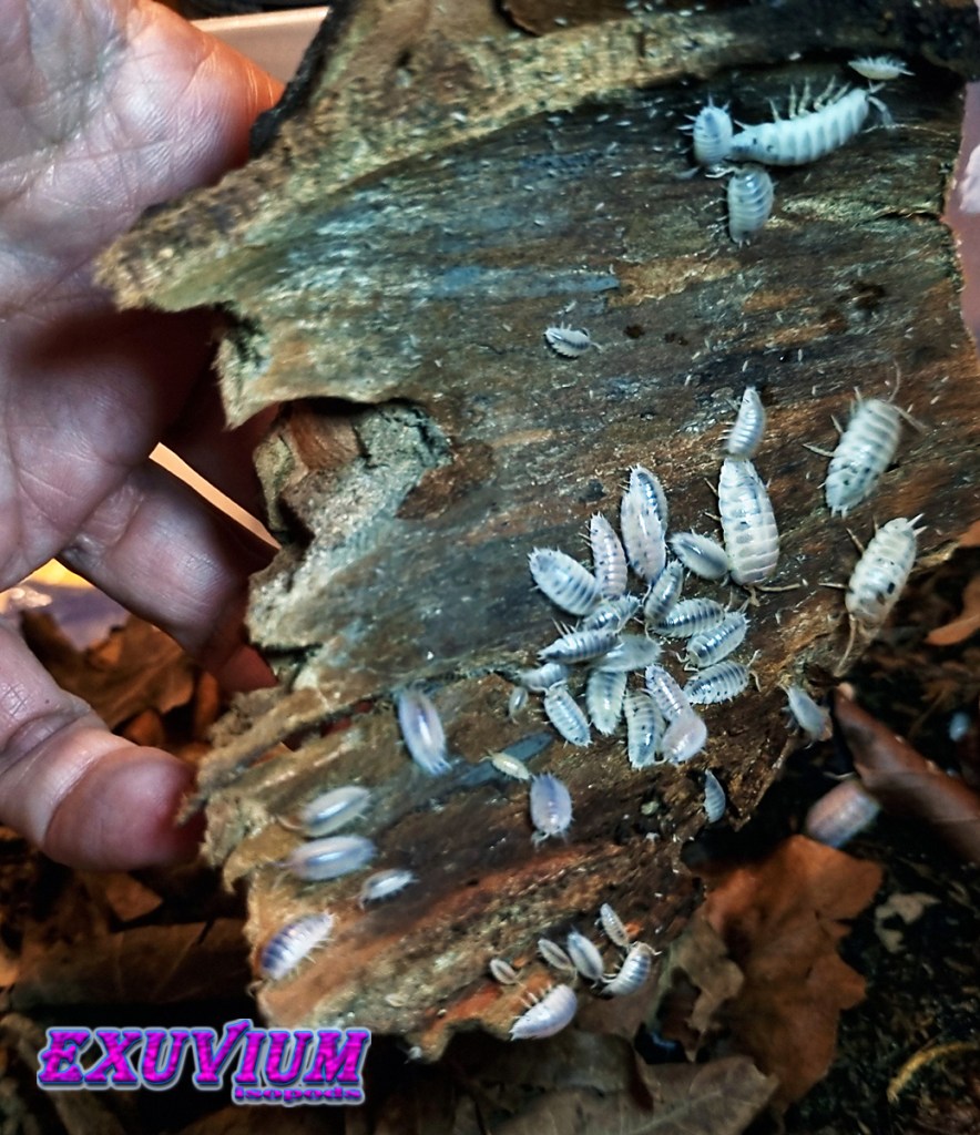 Terrarium: keep ½ moist with sphagnum moss and a piece of rotting white wood underneath. Porcellio laevis isopods thrive in higher humidity.