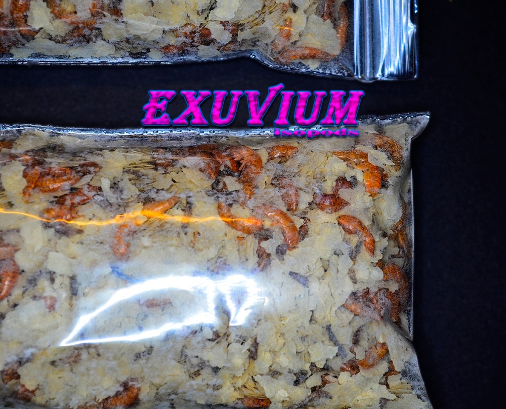 This protein mix consists of freshwater baby shrimps, red mosquito larvae, nutritional yeast and cellulose powder. The insects are all dried and have a long shelf life. The mix contains about 40 – 50 percent protein which is essential for terrestrial isopods and they are loving it!